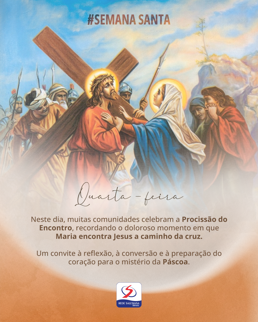 Em muitas paróquias, especialmente no interior do país, realiza-se a famosa “Procissão do Encontro” na Quarta-feira Santa. Os homens saem, de uma igreja ou local determinado, com a imagem de Nosso Senhor dos Passos; as mulheres saem de outro ponto com Nossa Senhora das Dores. Acontece, então, o doloroso encontro entre a Mãe e o Filho. O padre proclama o célebre “Sermão das Sete Palavras”, fazendo uma reflexão que chama os fiéis à conversão e à penitência.